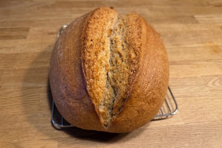 Mit Dampf backen bei fallender Temperatur auf 210°C für insgesamt 50min.