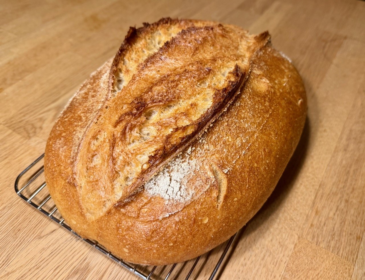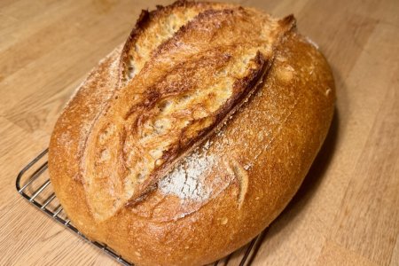 Teig in den Ofen befördern und schwaden. Temperatur auf 230°C reduzieren. Für ca. 50min ausbacken.